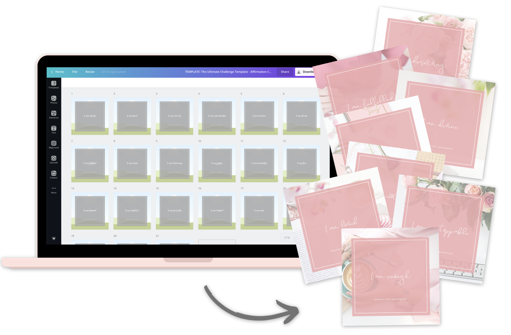 As well as how to edit your template, I also train you up on all of Canva's main features so you know you're way around in no time.
